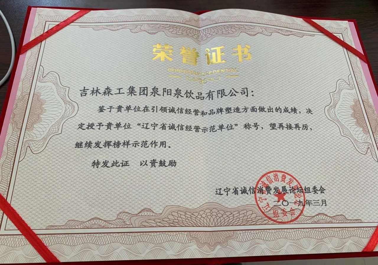 泉陽(yáng)泉榮獲“遼寧省誠(chéng)信經(jīng)營(yíng)示范單位”榮譽(yù)稱(chēng)號(hào)!